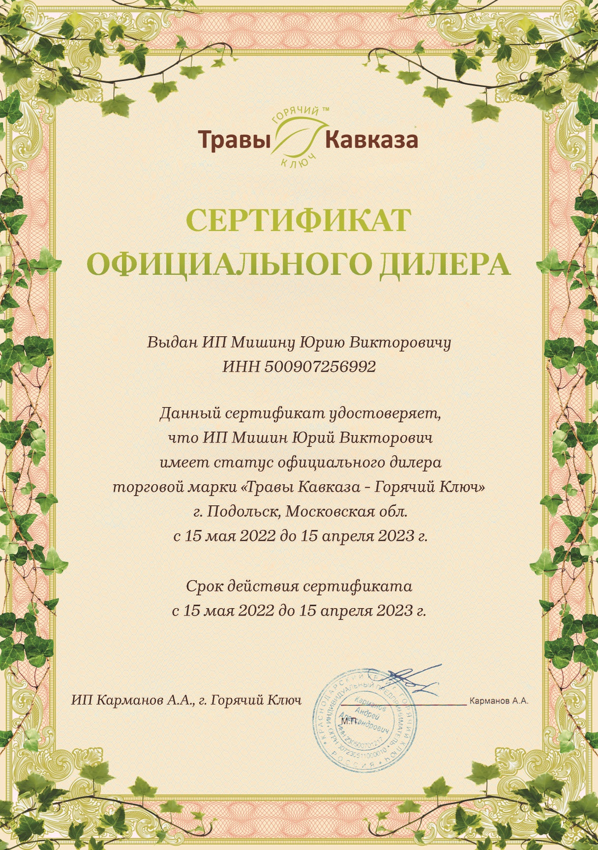 На нашем сайте имеются все необходимые сертификаты качества на реализуемую продукцию, что позволяет каждому покупателю лично убедиться в добросовестности магазина “Мистер Травник”.